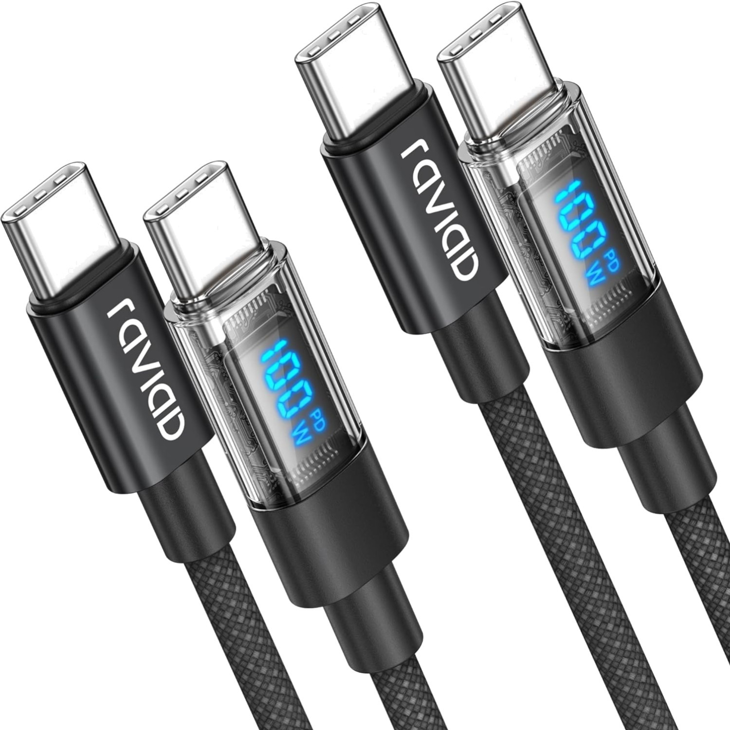USB C Kabel 2 Stück 1M 100W Schnelllade-Datenkabel LED Display für Smartphone…