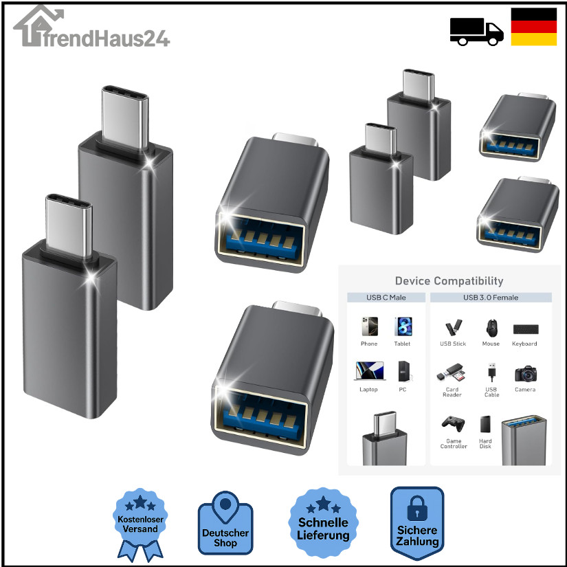 USB-C zu USB-Adapter 4er Set OTG Konverter für MacBook iPhone iPad Samsung